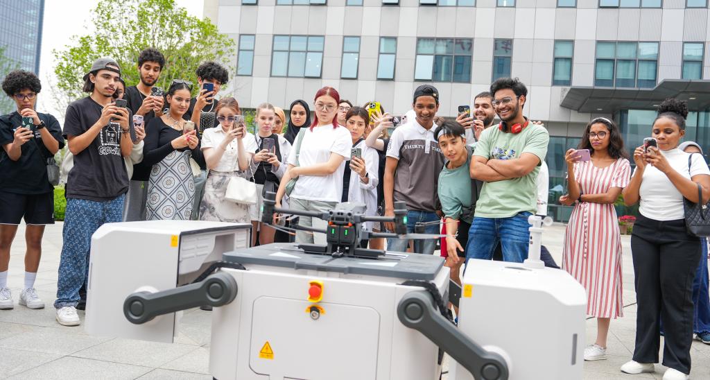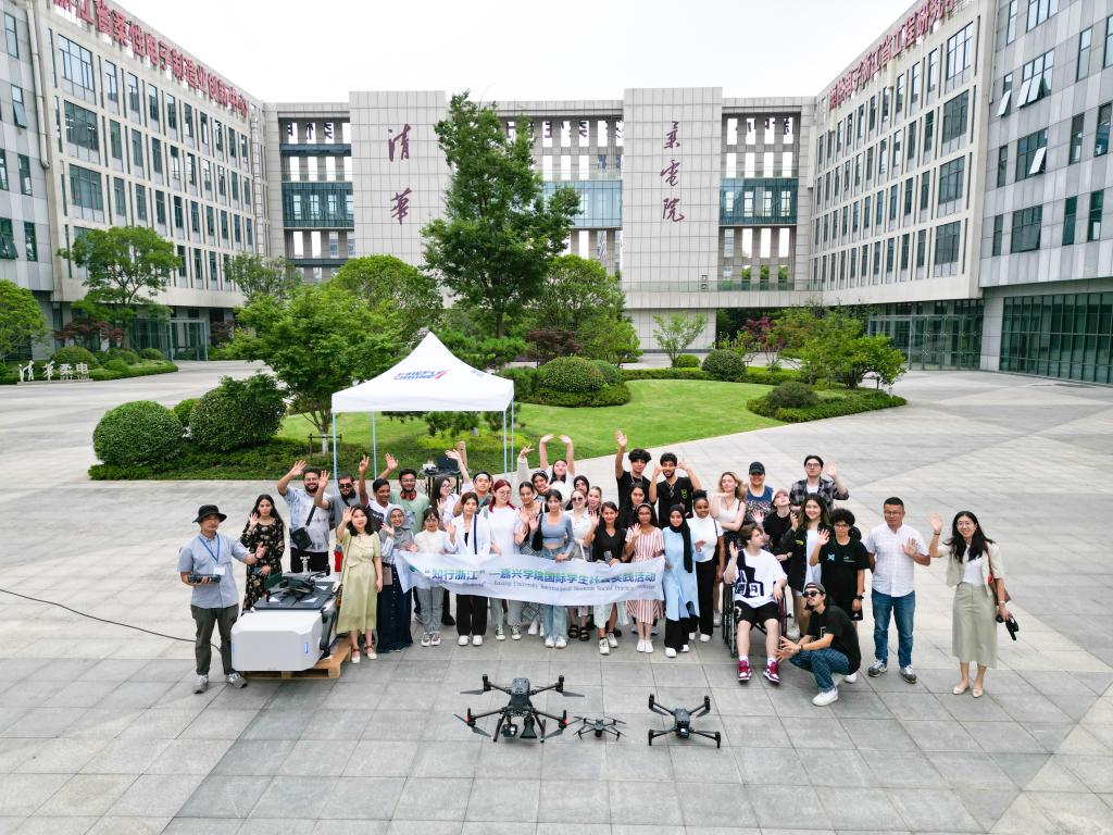 随后,留学生们重点考察了我校青年创业校友陈昱彤任总经理的企业嘉兴天旭航空技术有限公司。陈昱彤是我校机电工程学院电信专业毕业生,2019年10月,经中国电科36所党政联席会批准,离岗创业,现任嘉兴市模型无线电运动协会常务副主席。陈昱彤及其科创团队一介绍了公司的创业历程,向留学生们展示了无人机的创新技术以及科创助力未来生活的具体实践。留学生们饶有兴趣的进行了实际无人机驾驶操作,真实感受现代科技的无穷魅力,同学们异常兴奋。