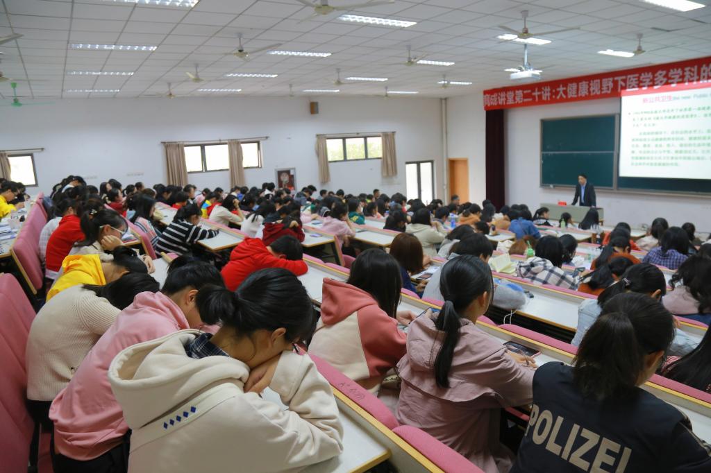 骆华伟先生首先向在座各位同学介绍了“健康中国”这个国家战略。分别从四个方面:健康环境、健康生活、健康覆盖、健康产业讲述了什么是健康中国。还分析了健康产业发展的新思路,从医、养、健、智四大板块和医疗服务、健康养老、健康管理、健康信息、健康旅游和文化、医疗装备和机械、药品和健康食品、体育健身等八大领域全面地讲解了医学的创新。还为同学们解答了新公共卫生和传统公共卫生的差异。最后骆先生讲到如今是一个医疗迅速发展的时代,人人享有健康这个美好的愿望一定能够实现。