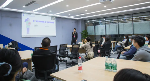 随后的交流互动环节,巨量引擎的金宏强老师带我们“深入抖音”,感受“企业文化、视频经济、人工智能”三大思想的碰撞。跟我们详细讲解了抖音的商业模式创新及未来布局,提到了近两年非常流行的直播带货,怎样以互联网思维去介入到实体经济中去,目前的直播带货主要有两种模式“人带货”或者“货带人”。最后工作人员针对于学生身份讲述了如何“玩”好抖音,如何进行抖音变现。