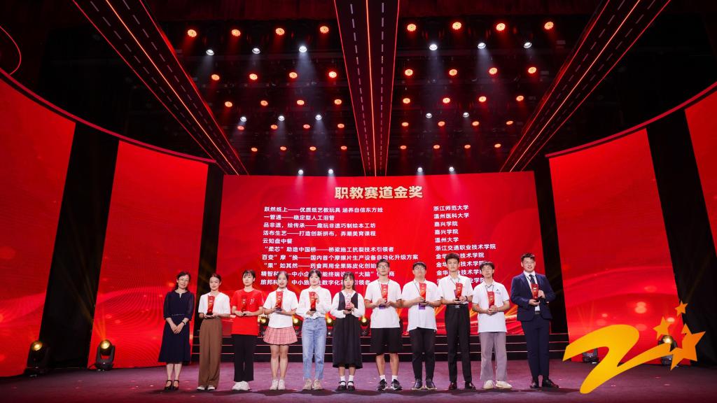 信息工程学院报送的项目《聚能科技——电池高性能化“赋膜者”》、生物工程学院报送的项目《若土有稻——下一代水稻育秧基质行业标准引领者》、材料与纺织工程学院报送的项目《益志新材料-抗病毒冷链包装材料领航者》荣获高教主赛道本科生创意组金奖;平湖师范学院报送的项目《品非遗,绘传承——趣玩非遗巧制绘本工坊》和《活布生艺——打造创新拼布,弄潮美育课程》荣获职教赛道创意组金奖;商学院报送的项目《“粽”横江湖》荣获最佳乡村振兴奖;《品非遗,绘传承——趣玩非遗巧制绘本工坊》荣获最佳人气奖。