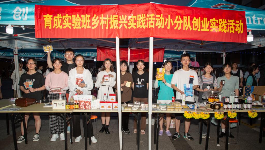 在众多摊位中,“爱心摊位”吸引众多学生参与。通过闲置书籍和手办的买卖,部分所得将捐助给嘉兴学院“益满湘西”公益团队,帮助远在湖南西部的留守儿童。育成实验班乡村振兴实践活动小分队也申请了一个摊位,学生热情售卖着桐乡石门的土特产。