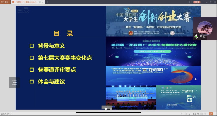 2022年3月17日,为提升学院“互联网+”大赛参赛指导水平,文法学院积极组织教师参加两场创新创业培训线上培训,包括创业学院院长左军教授的《“互联网+”大赛组织与项目发掘》和“互联网+”国赛评委张为老师的《如何寻找适合学生参赛的高质量项目》。