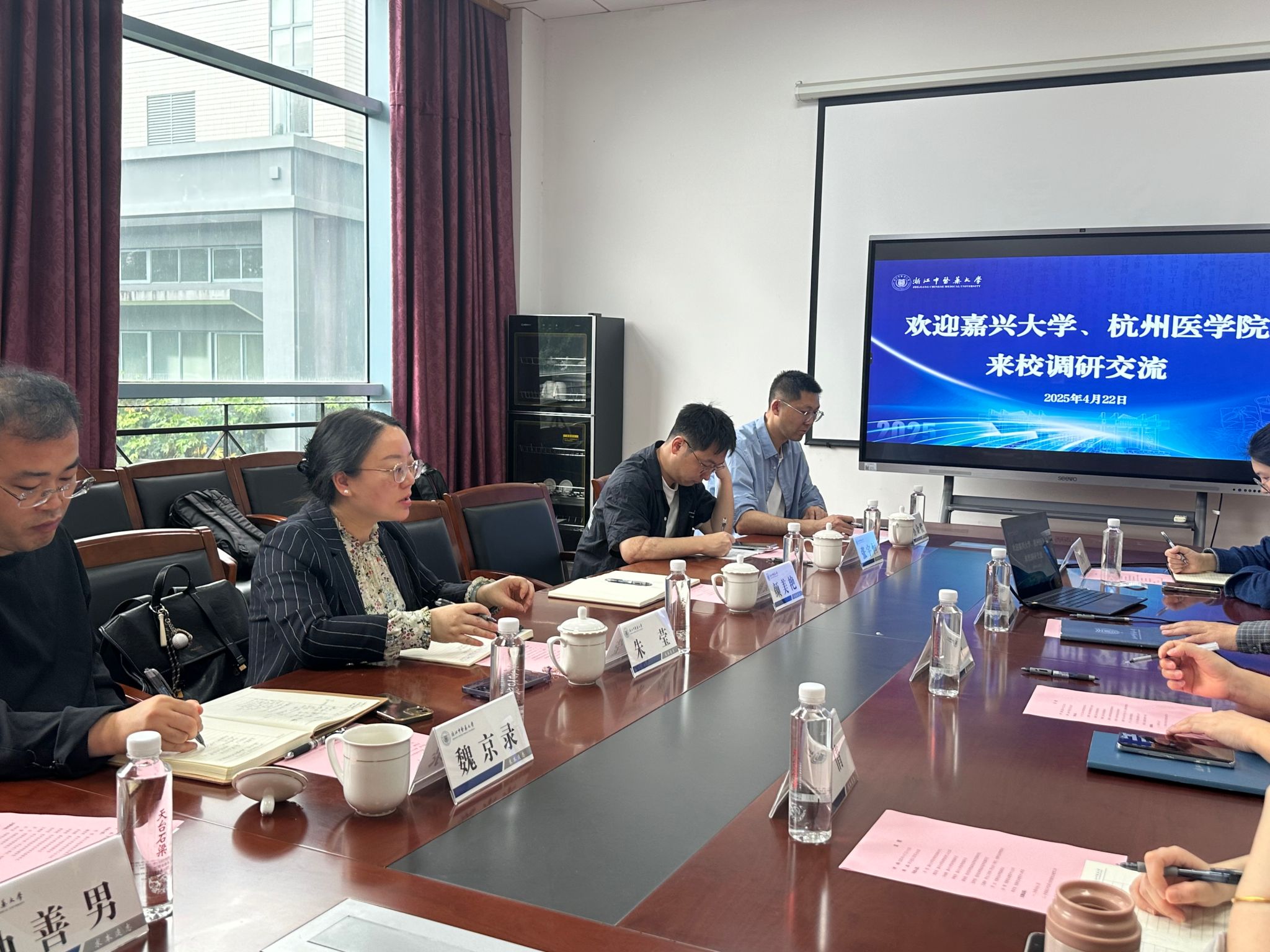 为深化校际合作,推动医学生创新创业教育工作,2025年4月22日,太阳成集团tyc41183医学院党委副书记朱莹、杭州医学院临床医学院党委副书记颜美艳一行共赴浙江中医药大学调研交流。浙江中医药大学学生工作部(学生处)部长兼tyc41183太阳成集团院长王建钟,tyc41183太阳成集团副院长罗杰及相关老师出席交流座谈会。三方围绕医学相关专业学生创新创业教育等议题展开深入探讨。