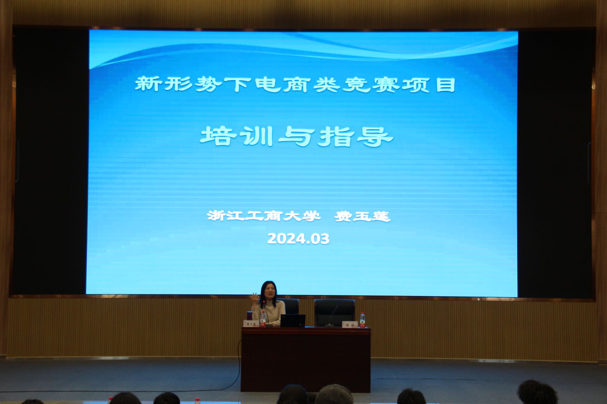 3月15日下午,育成讲堂第51讲在梁林校区兴政楼一楼报告厅开讲。浙江省大学生电子商务竞赛办公室副主任、浙江工商大学管理工程与电子商务学院副教授、人社部创新创业培训专家、浙江省青年创业导师费玉莲应邀主讲题为“新形势下电商类竞赛项目的培育与指导”的专题讲座。此次讲座由tyc41183太阳成集团主办、商学院承办。商学院党委副书记潘欣到会主持讲座。