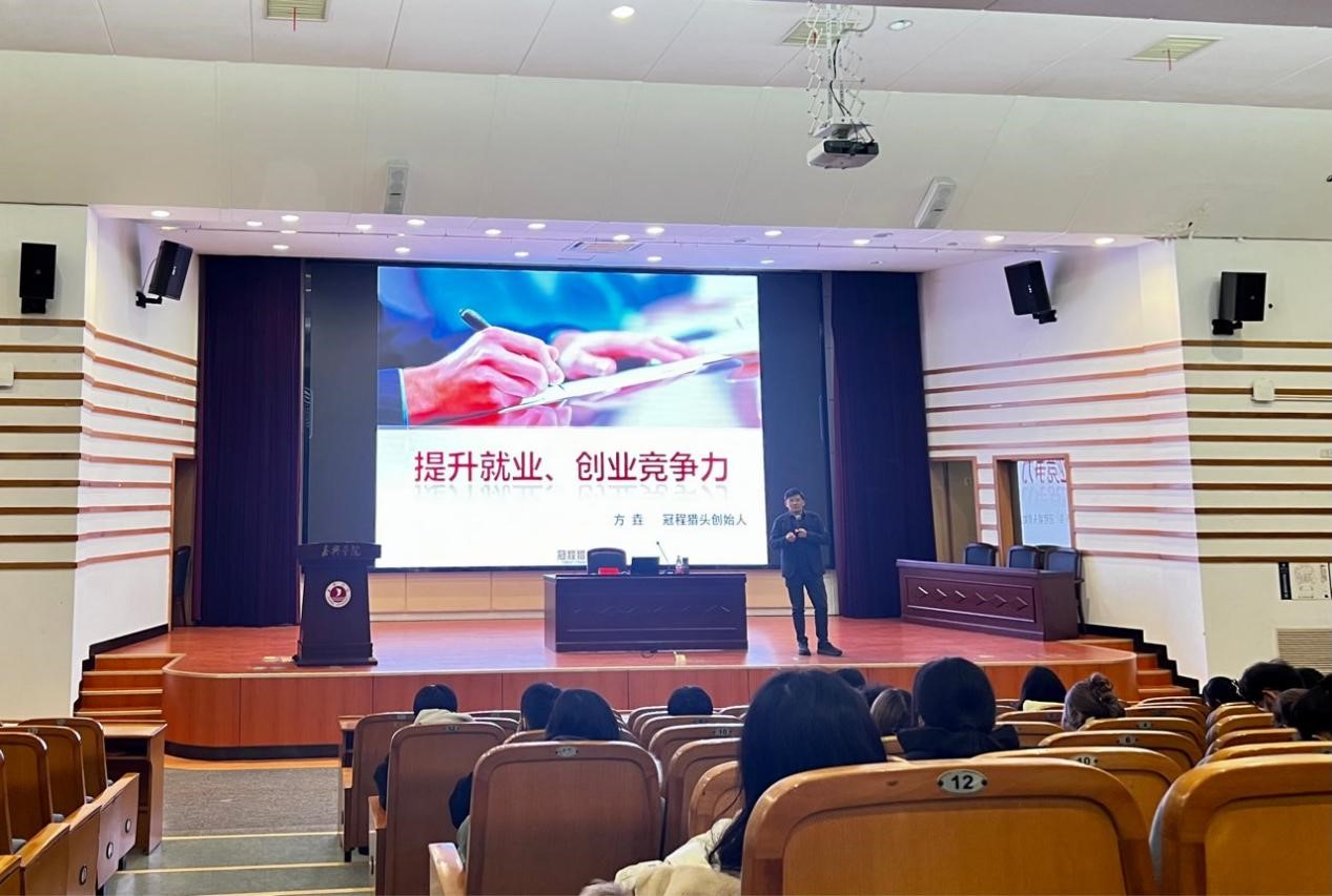 12月8日下午,由文法学院承办的育成讲堂第四十讲——《提升就业、创业竞争力》在梁林校区TCL国际报告厅顺利举行。冠程猎头创始人、浙江大学特聘职业发展导师、浙江大学班长会特聘讲师、杭州市政府创业导师、嘉兴学院2002届优秀校友方垚担任本次的主讲人,全校约200名师生参加了此次讲座。