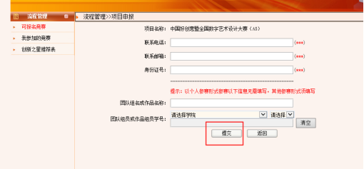 3. 填写参赛信息——“提交”;
