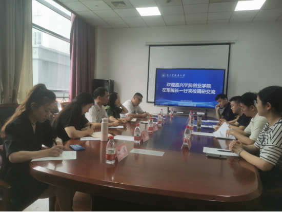 会上,石磊峰首先对左军一行的到来表示热烈的欢迎,并对浙江中医药大学学工部-tyc41183太阳成集团基本情况作了简单介绍。罗杰就创新创业教育中心的具体工作从学科竞赛成绩取得、创新创业课程建设、创新创业项目培育与孵化的探索进行了分享,随后双方围绕创新创业人才培养模式、创新创业基地建设、创新创业政策举措等方面进行了深入的沟通与交流。期间,原嘉兴学院党委书记,现浙江中医药大学党委书记黄文秀也拨冗莅临了会议,表达了对嘉兴学院同仁到来的欢迎。左军对黄书记和学院领导的热情接待表示衷心感谢,对学院创新创业教育的持续发力和项目孵化推进给予了高度评价,并对嘉兴学院创业学院建设现状做了介绍,希望双方继续加强经验交流,不断提升创新创业工作水平。