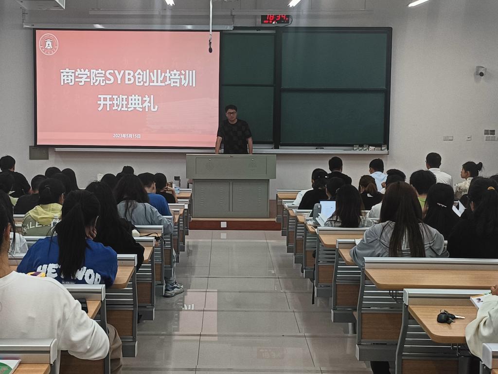 5月15日晚上,商学院2023年度SYB创业培训开班仪式在明德楼236举行。学院党委副书记潘欣、培训教师及SYB创业培训学员等120余人参加了开班仪式。