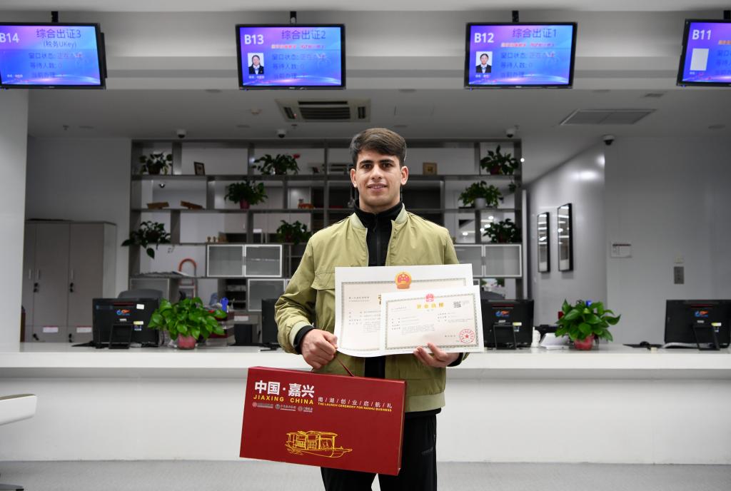 4月14日,来自塔吉克斯坦的嘉兴学院外国语学院留学生阿里,在南湖区行政审批中心领到了营业执照,这也是嘉兴学院大学生创业实践园自2013年开园以来的第一张留学生创业的营业执照。今年6月即将毕业的阿里在创业学院的帮助下,不断调整自己的创业意向,进行试错训练,终于创办了嘉兴希瑞里进出口有限公司。“嘉兴很美,也是创业的好地方,感谢嘉兴学院对我的培养,感谢创业学院对我项目的扶持,我决定留在嘉兴。”阿里说。